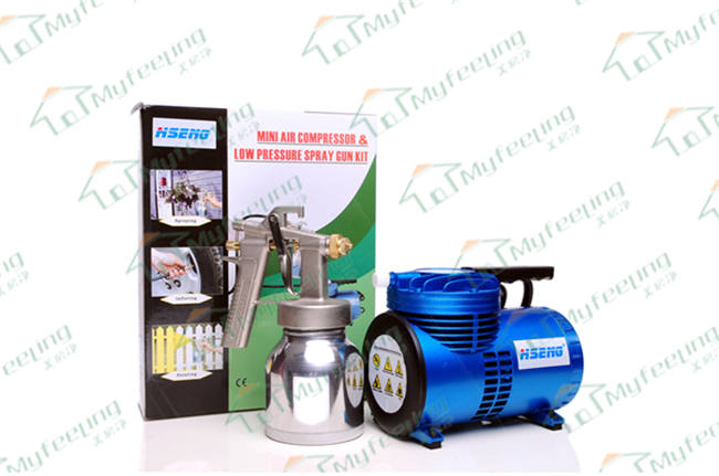 适用领域: 1、可喷涂光触媒及各种油漆、乳胶漆、药剂、水剂等 产品特点: 1、无油环保型设计,无污染; 2、小巧美观,一机多用,集喷涂、充气、花卉杀虫喷雾于一体,结构紧凑合理,特别适用于流动作业; 3、喷涂:雾化充分、精细均匀,涂料利用率在70%以上(普通喷涂机仅为30%); 4、充气:快速方便,轿车轮胎仅3分钟能到标准气压;多用充气接头可直接与轿车、摩托车、自行车及各种球类相连接使用; 5、安全可靠:压力超过4.0BAR时会自动卸压,绝无爆炸可能,每台电机经1800V耐压测试,绝无漏危险。 6、品质保证:本产品按德国GS 标准严格把关生产、产品已通过GS、CE 国际认证。 技术参数: 空压机:MFJ-PT2 功率:60W 压力:3.5BAR 流量:68L/MIN 喷枪:HS-F75 容量:750CC 最大工作压力:50psi 喷嘴:0.5MM/1.3mm 扇形宽度:40MM 专用风管: 2.5M 电线长度: 1.9M 毛 重:4.5KG 执行标准: CE、GS